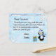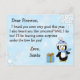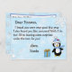 Cute copos de nieve blancos y azules, con un adorable pingüino festivo y una carta personalizada de Santa Claus en la parte delantera. La parte trasera tiene un lugar para que su hijo escriba su lista de deseos de Navidad.