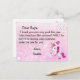 Copos de nieve rosados y blancos lindos, con un unicornio adorable y una carta personalizada de Santa Claus en la parte delantera. La parte trasera tiene un lugar para que tu hijo escriba su lista de deseos de Navidad.