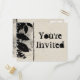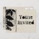 ¡Un premio Zazzle Top Ten Views! Postales de invitación "Estás invitado". Papel de aspecto texturizado con borde de hojas ilustracion angustiado con texto de aspecto ondulado a la antigua que se puede cambiar y personalizar fácilmente. Ideal para los próximos bodas, compromisos, fiestas de aniversario y cumpleaños, y guardar la fecha, etc. La parte posterior también se puede personalizar con más texto o dejar en blanco para escribir personalmente más tarde.
