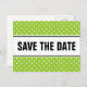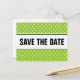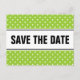Tarjetas postales lindas para guardar la fecha de la reunión familiar con lunares verdes manzana y blancos. Perfectas para reunión familiar, reunión, encuentro, reunión, barbacoa, cena, etc. Diseño de impresión de lunares de moda. Tipografía moderna.
