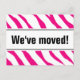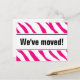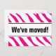 Tarjetas postales modernas de mudanza con rayas de cebra rosadas. Texto de mudanza personalizado; ¡Nos hemos mudado! Agregue su nueva dirección en la parte posterior. Tarjetas modernas de nueva casa para hogar y negocio. Gran idea para restaurantes en movimiento.