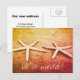 Tarjetas postales animadas de estrellas de mar tropicales para nuevo hogar en destino exótico cálido. Texto de mudanza personalizado; ¡Nos hemos mudado! Agrega tu nuevo cambio de dirección en la parte posterior. Tarjetas modernas de nueva casa para reubicación de hogar y negocio. Diseño de imagen de pez estrella de mar exótico en playa soleada con tipografía de letra manuscrita elegante. También ideal para viaje de luna de miel / boda en destino o resort de vacaciones. Sube tu propia imagen con estilo de instagram vintage a esta plantilla. Envía tarjetas de "nos hemos mudado" a amigos y familiares. Fotografía de escena costera vintage.