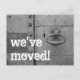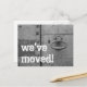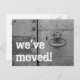 Postal móvil con timbre de puerta y tecleo. Personalizado mover texto; ¡Nos hemos movido! Añade tu nueva dirección en la parte posterior. Tarjetas móviles modernas para una nueva ubicación en el hogar o en el negocio.