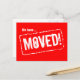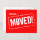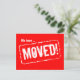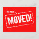 Tarjetas postales rojas de mudanza con sello de goma. Texto personalizado de mudanza; ¡Nos hemos mudado! Agregue su nueva dirección en la parte posterior. Tarjetas de mudanza para casa y negocio.