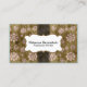 Un borde de forma retro enmarca tu nombre y título en un fondo de flores grises a la sombra. Los detalles completos aparecen en la parte posterior de la tarjeta.