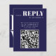 ¿Buscando unas tarjetas RSVP modernas y elegantes para el código QR Boda? Consulte nuestras elegantes tarjetas RSVP Blue de la Marina para obtener el código QR Boda. Con una caligrafía audaz que añade un toque de sofisticación, este rsvp azul marino con código qr ofrece un aspecto limpio y sencillo. Puede agregar una dirección URL para generar un código QR. Este esvp de bodas minimalista tiene un giro moderno que cautiva a los que buscan sutileza. Minimalista boda rsvp tarjeta de código qr!