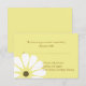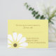 Elegantes tarjetas RSVP de respuesta boda hechas en amarillo, con tiras como esténcil dulce como gráficos de una margarita blanca, en la esquina inferior izquierda. El texto marrón está listo para personalizar tu día especial.