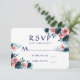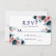 Un delicado ilustracion acuático de un ramo boda con flores color azul claro, azul oscuro, coral y rosa claro. La paleta de colores suaves y la acuarela crean un diseño romántico y elegante, perfecto para materiales relacionados con el boda.