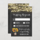 Cartas RSVP de boda campestre con tablero de croquetas de girasol - con fondo de pizarra con luces decorativas de cuerdas y un frasco de albañil en la parte inferior decorado con arpillera y encaje. Jar también está lleno de girasoles. Vea la colección completa de coincidencias a continuación.