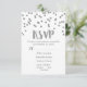 Tarjetas RSVP de boda de Confetti plateado