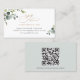 Diseñada para coordinar con nuestra colección de bodas Boho Greenery Gold, esta tarjeta RSVP de tamaño de tarjeta de visita de personalizable, incluye hojas de color verde con texto gráfico de caligrafía, junto con un serif elegante en negro con la opción de añadir un código QR en la parte posterior. Elementos coincidentes disponibles.