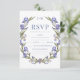 Tarjetas RSVP de boda floral con iris azules