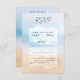 Tarjetas RSVP de boda en la playa con texto y foto cambiables - puedes cambiar foto y texto (nombres y fechas) o puedes dejar texto tal como está: Estamos emocionados de tomar el sol, disfrutar de la brisa del océano y ser parte de esta mágica celebración.
