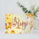 Coloridas tarjetas RSVP de boda otoño con hojas de otoño en ambos lados, delante y atrás, y texto personalizado - puedes cambiar texto (nombres, fechas...).