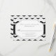 Tarjetas RSVP / Reply con un diseño de color y un patrón de chevron alternado en negro, blanco y gris.