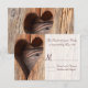 Una tarjeta rsvp de invitación a la boda de corazón de madera rústica y única.