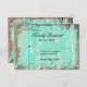 Rústica Barn Wood Aqua Turquoise Country Bodas RSVP Tarjetas con un fondo de madera de granero afligido y descolorido con un afligido color azul turquesa verde azulado sobre la parte superior. Son ideales para una boda rústica de campo con colores bodas acuáticos. Elementos coincidentes: