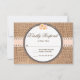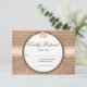 Rústico País Rubor Boho Rosas y tarjetas RSVP de la boda Burlap. Estas tarjetas rsvp de bodas con problemas tienen un fondo de burlap impreso con una cinta de melocotón rubeca impresa y un diseño de encaje. Hay rosas en la cima. Las tarjetas de respuesta son perfectas para una boda rústica de campo. Elementos del juego de Bodas coincidentes: