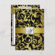 Tarjetas RSVP de Monograma Gold y Black Damask Wed