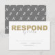 Esta sencilla tarjeta de papelería boda de respuesta presenta tipografía caprichosa y un moderno patrón X y O sobre un fondo gris de moda. El diseño incluye un espacio para los clientes del RSVP con sus detalles sobre un suave fondo rosa pálido, acentuado por detalles de moda en oro falso. Perfecto para bodas, bar mitzvahs, duchas para bebés, fiestas de cumpleaños o duchas de novias, esta tarjeta combina perfectamente estilo y funcionalidad. Póngalo en pareja con la suite de papel completa para un aspecto coordinado. Explora más diseños en www.zazzle.com/dotellabelle.