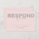 Diseñada para coordinar con mi juego de papelería temática contemporánea, esta tarjeta de gabinete de respuesta presenta su información de respuesta con la palabra Responder es una redacción falsa de plata sobre un fondo sólido rosa rubor. La tarjeta se invierte a un fondo rosa pálido sólido. Perfecto para el bar mitzvah, duchas para bebés, fiestas de cumpleaños y duchas de novias. Para ver la suite de papel correspondiente, visite www.zazzle.com/dotellabelle