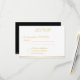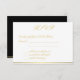 Tarjetas RSVP de boda monogramadas en blanco, negro y dorado con texto de personalizable