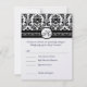 Respuesta RSVP de monograma de damasco negro con opciones de menú