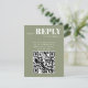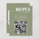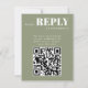 ¿Buscando unas tarjetas RSVP modernas y elegantes para el código QR Boda? Consulte nuestras elegantes tarjetas RSVP de color verde sabio para el código QR Boda. Con una caligrafía audaz que añade un toque de sofisticación, este sage green rsvp con código qr ofrece un aspecto limpio y sencillo. Puede agregar una dirección URL para generar un código QR. Este esvp de bodas minimalista tiene un giro moderno que cautiva a los que buscan sutileza. Minimalista boda rsvp tarjeta de código qr!