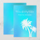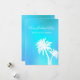 Tarjetas de Navidad planas en tonos azules acuáticos tropicales con siluetas blancas de palmeras y texto. Personaliza un saludo y añade una firma a tarjetas de Navidad sencillas y únicas con un tema tropical. El reverso es azul.