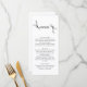 Añada elegancia sin esfuerzo a sus mesas de recepción con esta minimalista tarjeta de menú de boho, que incluye "Menú" en un delicado guión dibujado a mano y campos de personalizable para más detalles. El diseño, en blanco y negro, combina el encanto bohemio orgánico con la simplicidad moderna, perfecta para bodas rústicos, de jardín o modernos.