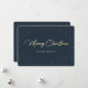 Navidades personalizados azules y dorados con un título de caligrafía de oro falso sobre un fondo azul claro. Personalice fácilmente estas simples tarjetas de Navidad con su nombre y texto familiar.