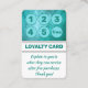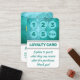 Dé a su negocio de bienestar un toque fresco y refinado con esta tarjeta de punch turquesa. Perfecto para salones, spas y estudios de masaje, cuenta con un guión elegante y texto en negrita, además de espacio para un logotipo, asas sociales y tu oferta de recompensa personalizado. Construir visitas repetidas con una tarjeta que se sienta tan bien como tu servicio.