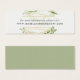 Desliza estas pequeñas tarjetas botánicas en tus invitaciones nupciales para que los invitados visiten el sitio web de tu boda para más información. Las tarjetas presentan un borde superior e inferior de elementos geométricos dorados y una vegetación exuberante en tonos acuáticos pintados de verde helecho. Diseñado para coordinar con nuestra colección de bodas Terrarium.