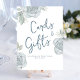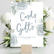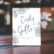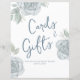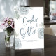 El diseño presenta una decoración boda de bienvenida azul floral simple, señalización de señalización de la recepción decoración fiesta, señalización de tarjetas y regalos, un diseño moderno y elegante de escritura de caligrafía, un texto tipográfico caprichoso, un cliente clásico de bienvenida tradicional, una caligrafía moderna simple minimalista, una elegancia simplista azul polvoriento mínimo, una imagen minimalista limpia y moda, novia tradicional clásica y novio