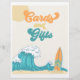 Rótulo de "Tarjetas y Regalos" Fiesta de Surf de 8 x 10". Se le enviará por correo como hoja de papel impresa de 8,5 x 11". El papel es un bonito y pesado material de tarjetas blancas. Querrás cortar el borde blanco, haciéndolo 8x10". ¡Puedes enmarcar el cartel o colgarlo en la pared, totalmente a tu disposición!