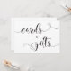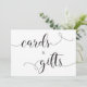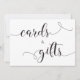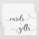 Elegante letrero de boda de TARJETAS Y REGALOS con caligrafía en negro y blanco.