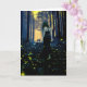 TARJETA DE CUMPLEAÑOS CON LUCIÉRNAGAS Y MUJER. INTERIOR EN BLANCO. ESCRIBA SU PROPIO MENSAJE.