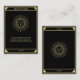 Detalles de la tarjeta boda que coincide con el tema del tarot. El diseño tiene un sol de época y un marco dorado sobre un fondo negro que recuerda a una carta de tarot. En el resto de la colección, encontrarás una decoración y una invitación.