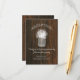 Una tarjeta de recepción de boda rústica y elegante que presenta una ilustración de un tarro de mason con aliento de bebé sobre un fondo inspirado en madera de granero.