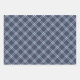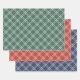 Un juego de papel de envolver con un patrón de Tartán en tres clásicos variaciones de color Navidad (azul, verde, rojo) es una decoración maravillosa para tus regalos.