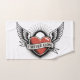 A classic, bold, and stylized tattoo-style graphic conveying themes of solitude and heartbreak. The central element is a bright red, glossy heart with a white highlight, flanked by large, detailed wings. A ribbon or banner scrolls across the heart, bearing the emotional text: "FOREVER ALONE" in block letters. Surrounding sunburst or ray motif in black, creating a dramatic, retro aesthetic typical of old-school American traditional tattooing.