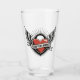 A classic, bold, and stylized tattoo-style graphic conveying themes of solitude and heartbreak. The central element is a bright red, glossy heart with a white highlight, flanked by large, detailed wings. A ribbon or banner scrolls across the heart, bearing the emotional text: "FOREVER ALONE" in block letters. Surrounding sunburst or ray motif in black, creating a dramatic, retro aesthetic typical of old-school American traditional tattooing.