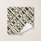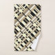 Este toalla tiene un toque moderno en las paredes de color marrón, marrón, negro y blanco.