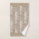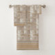 Toalla elegante en tonos crema y marrón, adornada en tonos grises y azules. Una belleza clásica ideal para tu decoración o para regalar.