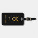 Elegante etiqueta para el equipaje con el símbolo del taurus dorado sobre fondo negro.