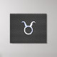 Un Rótulo Taurus Zodiac sobre un fondo de impresión de textura de diseño de fibra de carbono negro. Un diseño de arte urbano moderno para una gran idea de regalo personalizado. Utilice el enlace "Mensaje" para contactarnos con sus solicitudes de diseño especiales o para obtener alguna ayuda con sus necesidades de personalización.