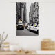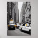 Una foto de un taxi bajando por la calle en blanco y negro con un poco de color amarillo. Esta es una obra de arte generada por IA.