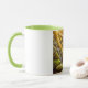 This ceramic 11 oz Combo Mug is painted on the inside and on the handle. The rest of the mug is white, with a colorful image of wildflowers and a waterfall on the front.
