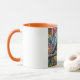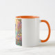 This 11 oz Combo Mug is ceramic with color on the inside and on the handle. The rest of the mug is white with the colorful image of a bird on the front.