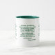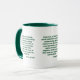 Esta taza de dos tonos muestra un nuevo tipo de letra machista con letras verdes que muestran el versículo de la biblia "1 Peter 3:7 KJV" sobre un fondo blanco. Este verso hace referencia al Libro de 1 Pedro 3er capítulo que muestra el séptimo verso de esta escritura biblia, el tema de la cita de la Biblia del Rey James. La llanta y la manecilla están acristaladas con colores a juego disponibles en la construcción de cerámica de microondas y lavavajillas de 11 onzas o 15 onzas.